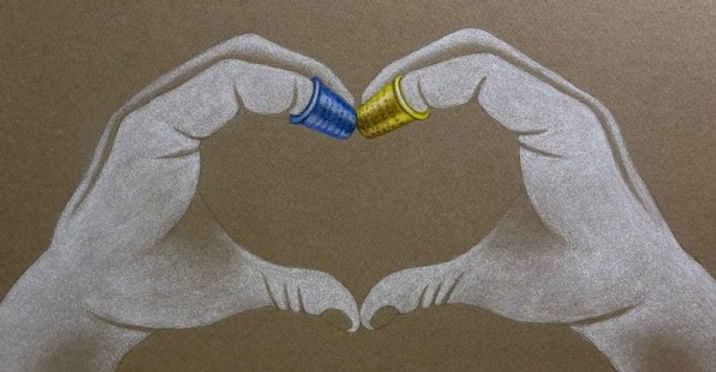 Hearts for Ukraine by Lesia Sochor. Charcoal, colored pencil